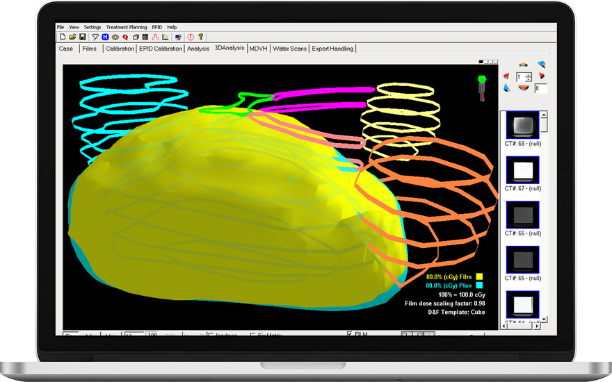 Cyber-Knife Patient-Specific QA Compare both 2D or 3D film measurements to Cyberknife planning data. Cyberknife specific tools allow for fast registration based on tracking fiducials.